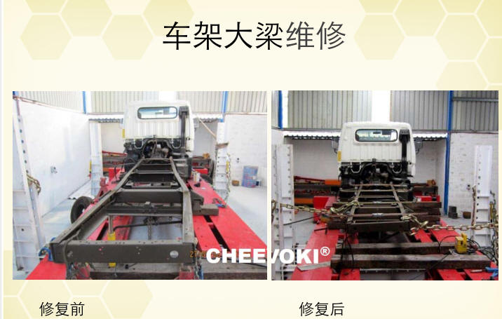15噸高壓油缸);下拉轉向裝置4套;車身前軸拉伸器1套(含2只100噸高壓油缸);大車修復專用液壓C型夾具1套(含NERPAC