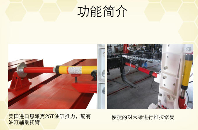 RC2510-25噸高壓油缸)X2套;左右側重載拉塔(配備ENERPAC RC2510-25噸高壓油缸)X6套;車身修復加高液壓裝置2套(含ENERPAC
