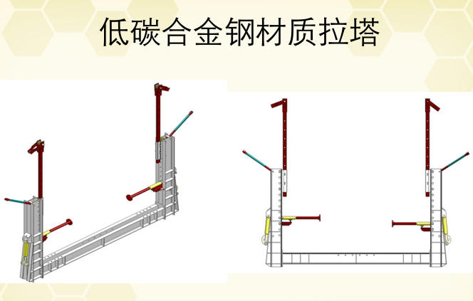 采用Q345高強度平臺(13000X2500X744MM;平臺厚度250MM);前后重載拉塔塔(配備ENERPAC